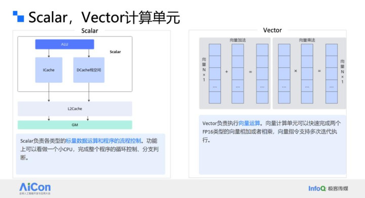 Scala 负责各类数据类型的基本运算和程序流程控制,例如 if else 等,可以看作是一个很小的 CPU,进行流程的分发。Victor 则主要用于向量运算,如向量加法、乘法等,能够快速完成例如 FB16 类型的相加或相乘操作,并支持多迭代执行。