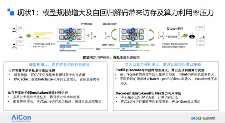 现状 1:模型规模增大及自回归解码带来访存及算力利用率压力